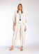 A dress with a minimal design and an intricate Japanese-looking pattern. With long sleeves and a V neckline, it has a midi length and comes in one size for all body types. Made from a cotton and elastic polyester blend fabric.